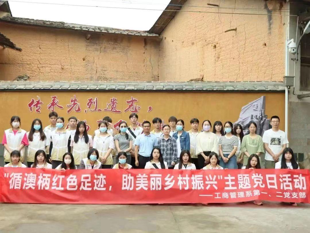 为了将学习贯彻习近平新时代中国特色社会主义思想主题教育引向深入,推动师生党员在主题教育中感悟思想伟力、凝聚奋进力量,以饱满的精神状态投入到学院发展各项工作中去。5月21日,由工商管理系党总支副书记许志敏带队,师生党员、入党积极分子一行三十五人驱车赴莆田市涵江区澳东村澳柄宫207团革命旧址和新县蓝莓基地,开展“循澳柄红色足迹,助美丽乡村振兴”主题党日活动。