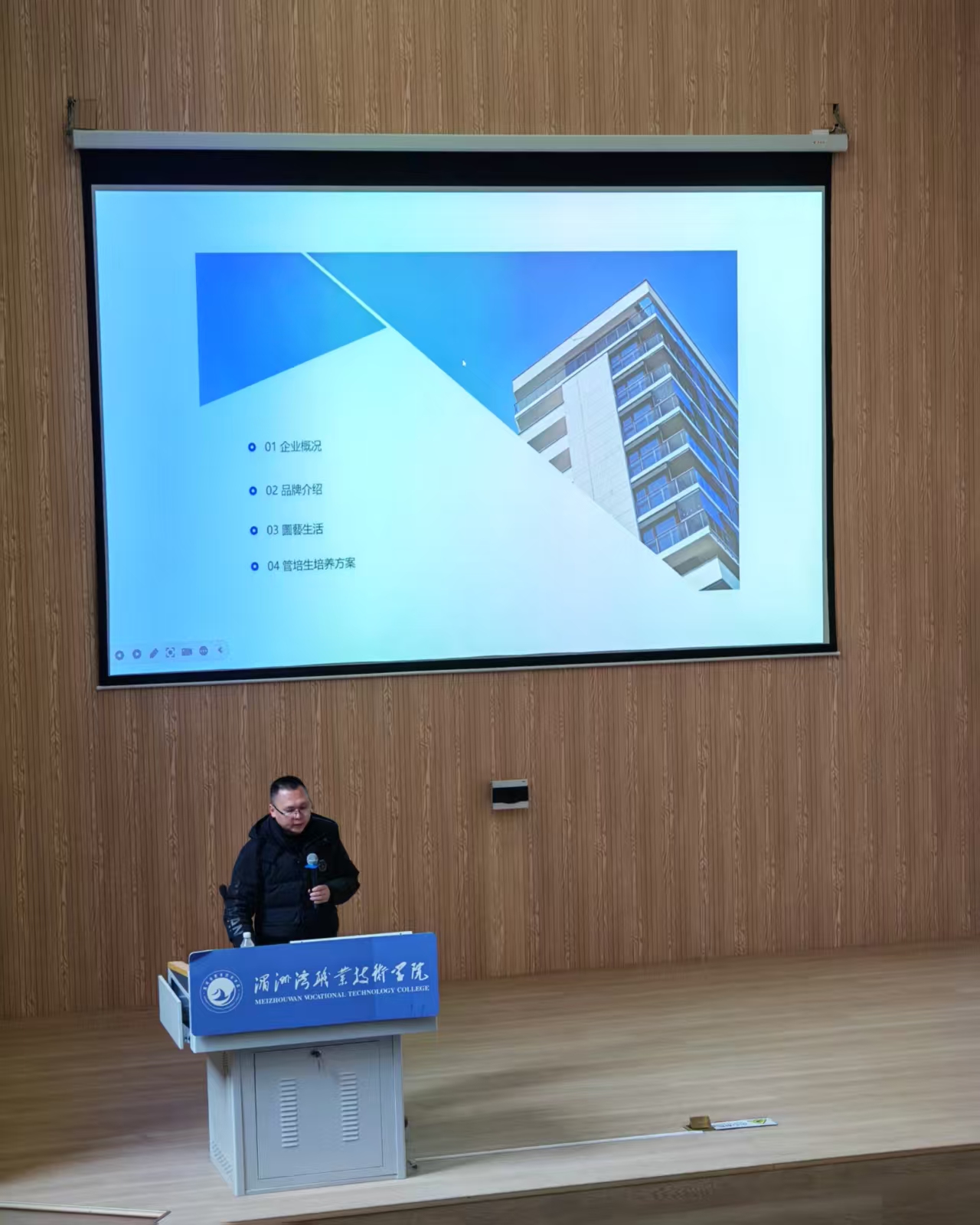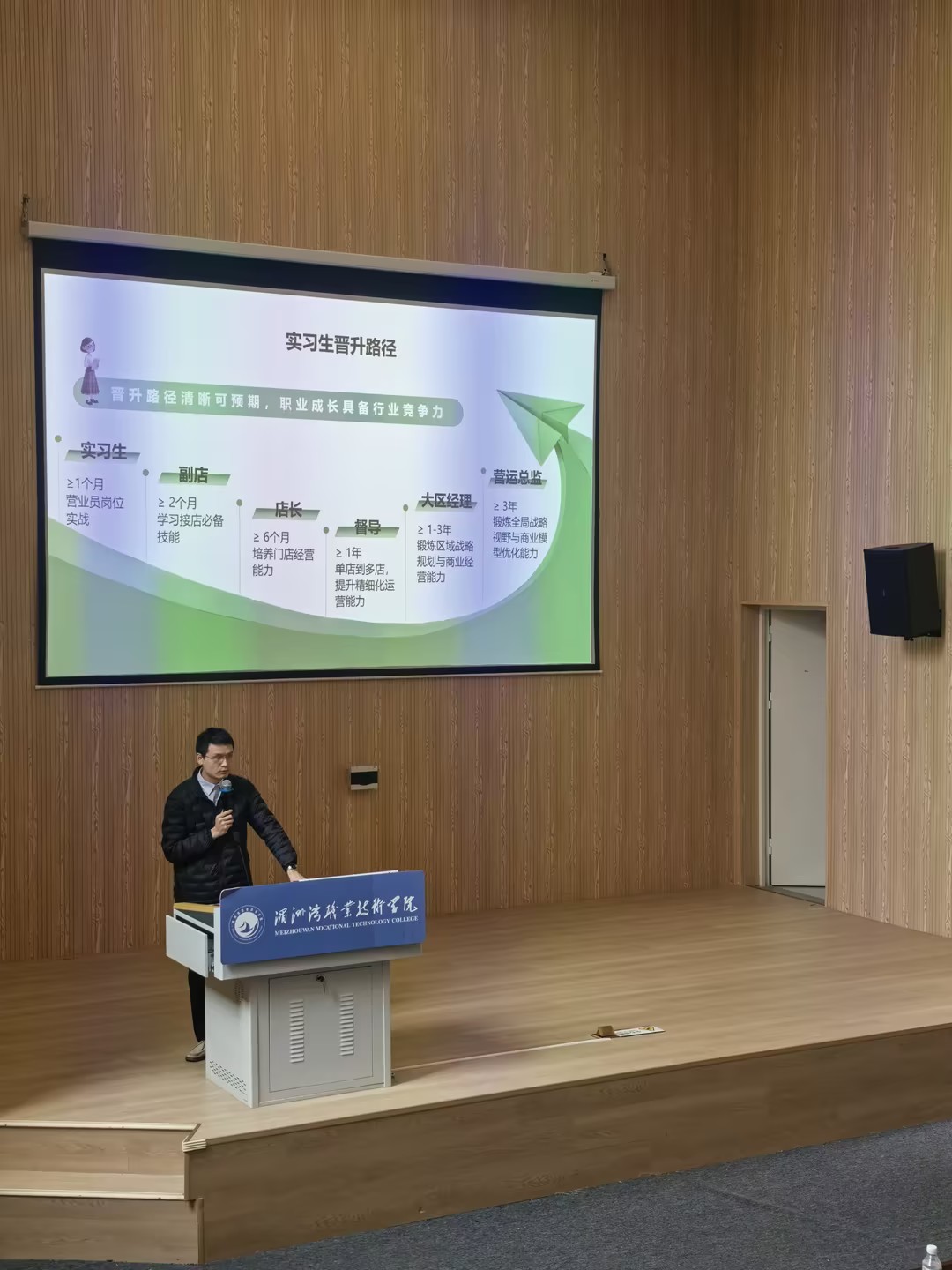 随后,各家企业代表依次上台进行宣讲,分别就企业发展、业务范围、实习岗位需求及培养计划等内容作了详细介绍。同学们认真聆听,结合自身职业规划,对意向企业进行了深入了解。