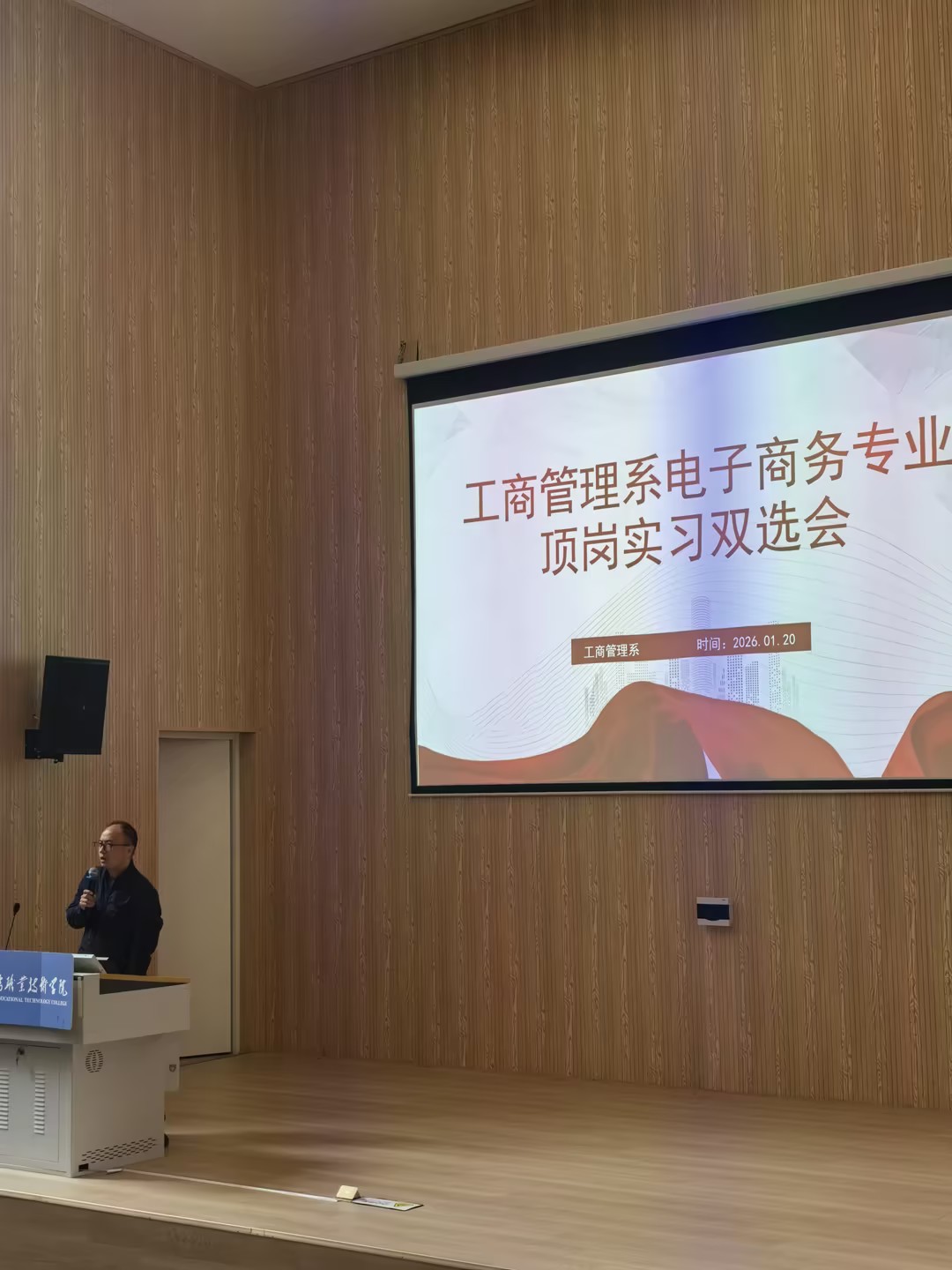 2026年1月20日下午,工商管理系顺利举办2026届电子商务专业(五年专)毕业生顶岗实习双选会。本次双选会旨在为学生与企业搭建双向选择、精准对接的桥梁,助力学生迈向职业实践新征程,活动由工商管理系副主任徐建主持。